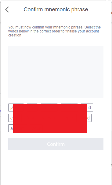 4-5. Continue 를 누르면 이 전에 나왔던 네모닉 단어를 순서대로 클릭해서 확인해줘야 한다.