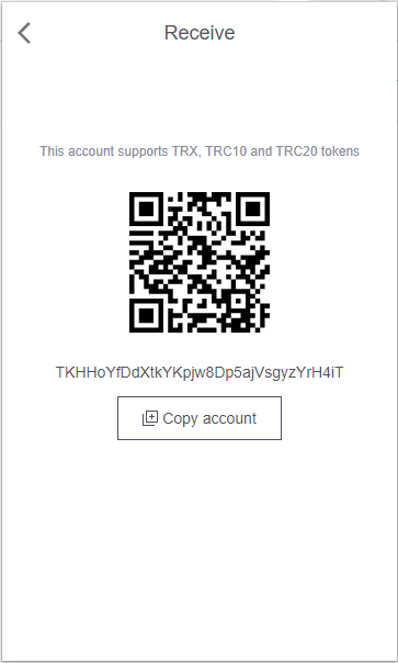 거래소에 아래와 같이 나타난 주소로 트론을 보내면 끝!