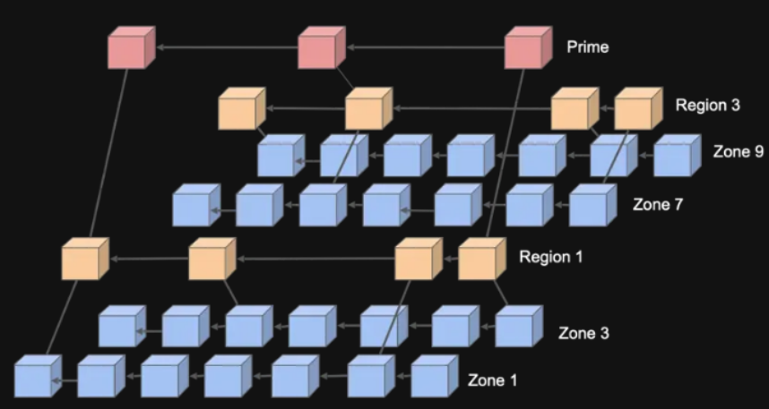 Quai는 Prime Chain, 3 Region Chain, 9 Zone Chain으로 구분되는 13개 체인의 네트워크입니다. Prime Chain은 채굴하기 가장 어렵지만 가장 중요합니다. Region Chain은 채굴이 덜 어렵지만 Zone Chain은 채굴이 가장 쉽습니다.