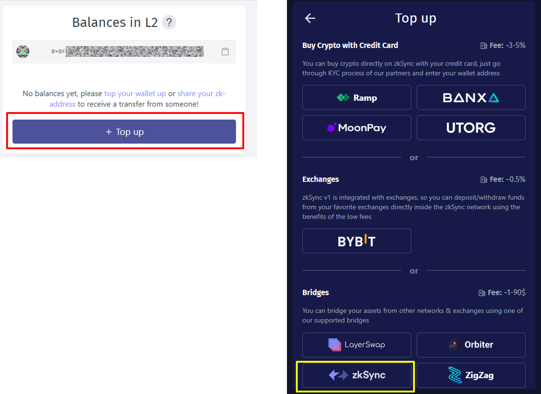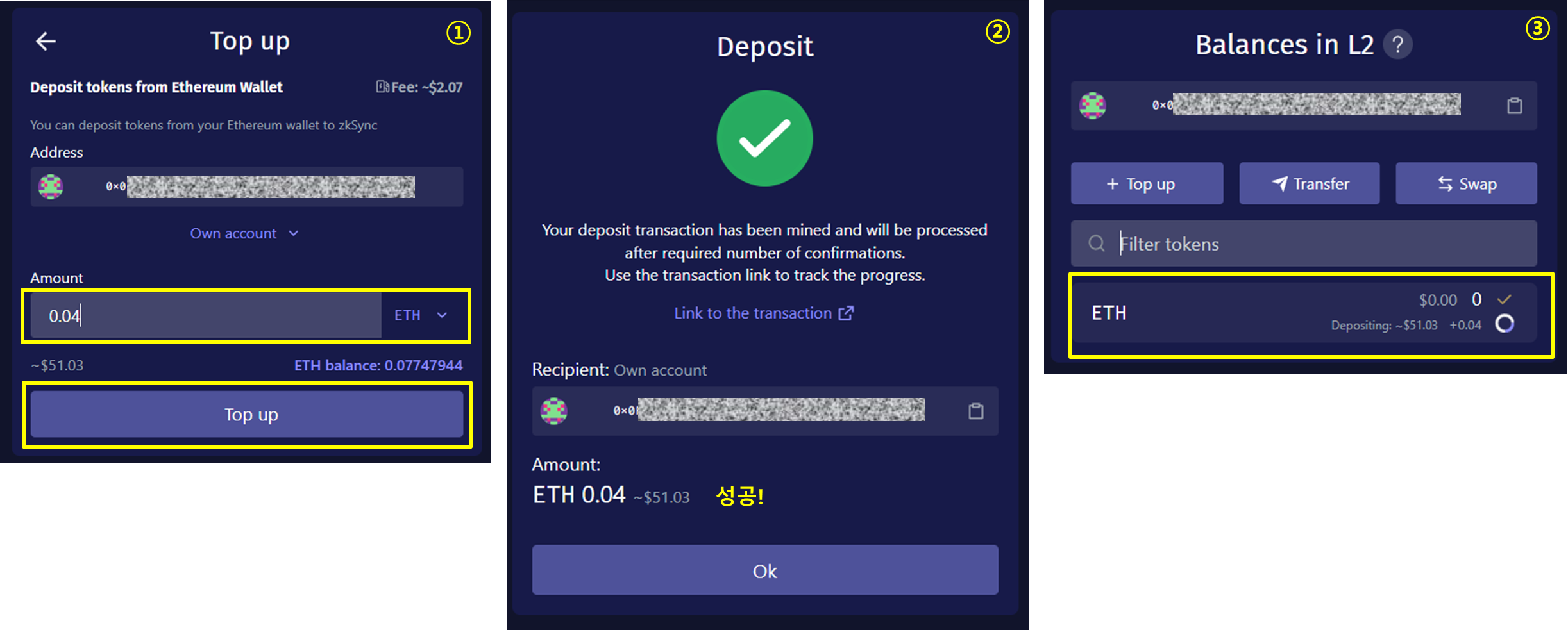 - 브릿지를 통해 이더메인넷 → zkSync로 넘길 소정의? ETH(수수료 포함)