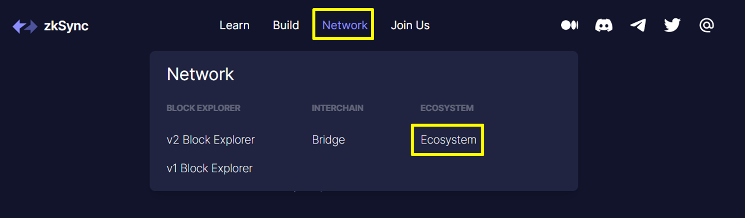 이 외에도 메인페이지의 'Network'를 통해 'Ecosystem'을 접속해보면 다양한 생태계(확장중인)를 확인해보고 이것저것 시도 해보실 수 있겠습니다.