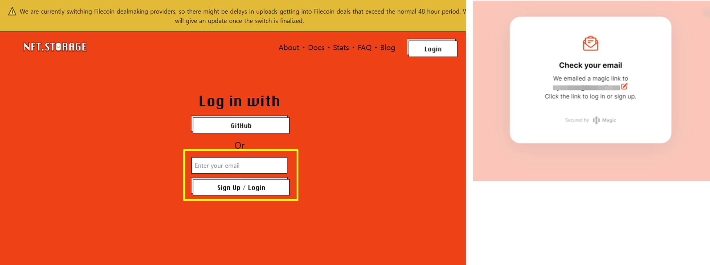 1/ https://nft.storage/ 에 접속후 우 상단의 로그인을 누릅니다.