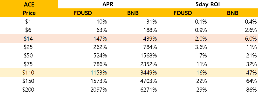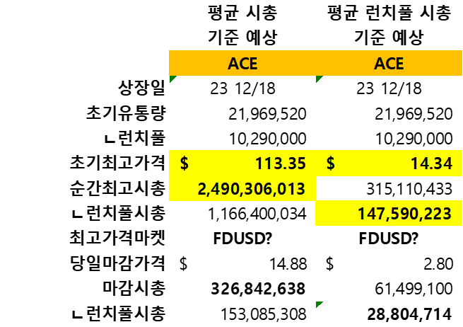 ACE 의 초기유통량 대비 런치풀이 거의 50% 를 차지해서, 지난 런치풀들의 평균시총 대비 예상 가격이 매우 높네요.