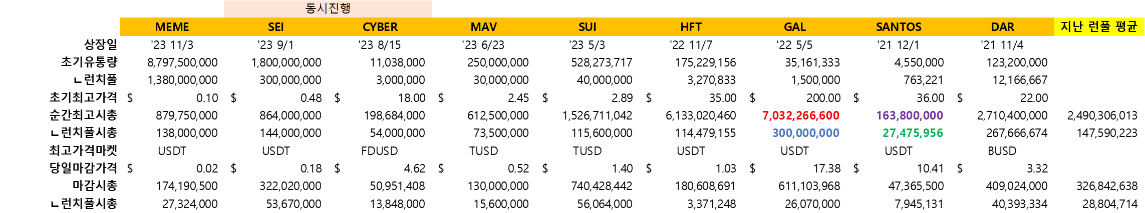 한가지는, 평균 희석 방지를 위해 예전에 동시 진행했던 $SEI / $CYBER 중 Hype 가 덜했던 $CYBER 기록을 제외 하였습니다.